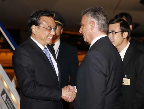 5月23日,中国国务院总理李克强乘专机抵达苏黎世,开始对瑞士进行正式访问。瑞士联邦副主席兼外长伯克哈尔特到机场迎接。新华社记者 鞠鹏 摄
